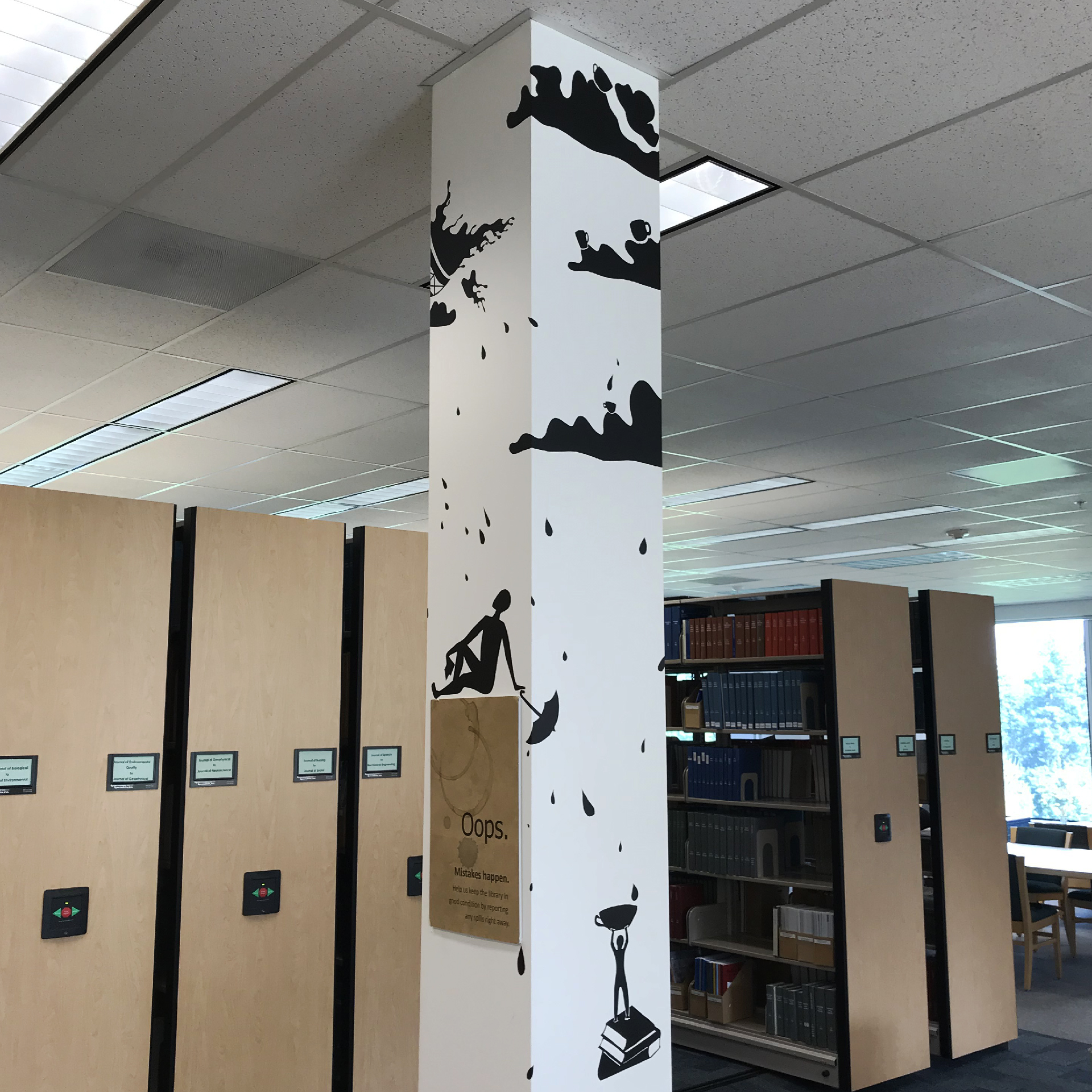 This show presents installations by students in the Beginning Drawing class taught by professor Avantika Bawa of the Fine Arts Department. The works were informed by interior architecture of the library, and its function as a place of both research and rejuvenation.