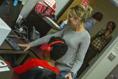 Pictured above, Lab Manager Mykala Anglin, helping student use MUSE headset.