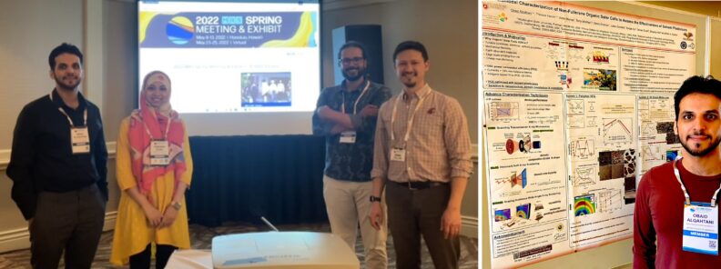 Awwad Alotaibi, Tamanna Khan, Obaid Alqahtani, and Brian Collins all presented at the 2022 MRS Spring Meeting in Honolulu, Hawaii. Brian has helped as an organizer of the “Symposium SB01—Organic Electronics—Multimodal Characterization and Computation-Driven Material Design and Performance”, also has chaired a few sessions in that symposium. Additionally, Brian presented an oral presentation titled: “Revealing the Impact of Interfacial Structure on Charge Generation and Recombination in Organic Photovoltaics”. Awwad’s presentation is titled: “Accurate Measurements of Charge Generation in Bulk Heterojunction Solar Cells with Overpulse TDCF Charge Extraction”. Tamanna presented here work, which is titled “Controlling Ionic Transport in Conducting Polymers via Chemical Gating”. Obaid’s oral presentation is titled: “Evidence That Sharp Donor-Acceptor Interfaces Suppress Recombination, Allowing for Thick Organic Photovoltaics”. Additionally, Obaid presented a poster, titled as: “Multimodal Characterization of Non-Fullerene Organic Solar Cells Based to Assess the Effectiveness of Solvent Plasticizers”.