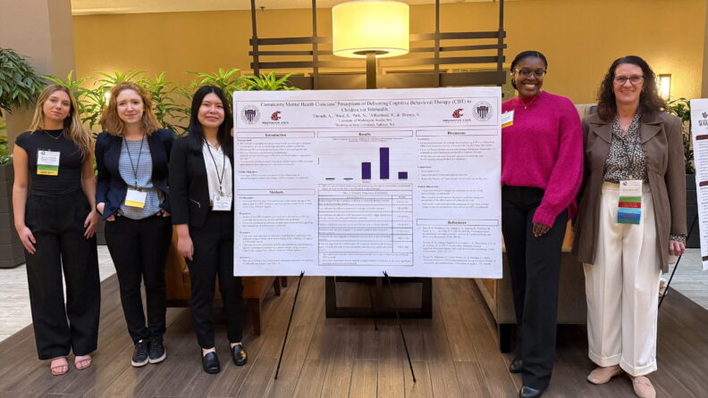 • October 18th, 2025– Lab members presented their research projects at the Washington State Psychological Association (WSPA) Fall Convention at Bellevue, WA. (Picture from left to right: Suzanne Ward, Katherine Craig, Michelle Jung, Alayna Daniels, and Dr. Cornelia Kirchhoff)