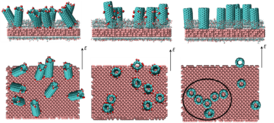 or horizontally aligned CNTs on substrates in order to control the effective electrical conductivity and mechanical properties of these devices and achieve substantial improvement in their performance. Solution-processed deposition of CNTs provides a cost-effective means to synthesize uniform vertically or horizontally aligned nanostructures on top of substrates. The efficacy of deposition depends on the solubility of CNTs in the solvent as well as the ordering of nanotubes relative to the substrates. These governing factors, which determine the specific morphologies of CNTs that are deposited, are governed by the molecular interactions between the CNTs and the substrate and solvent molecules. In an effort to mimic the conditions during solution-processed deposition of nanotubes on substrates, we are conducting atomistic simulations to study systems comprising carbon nanotubes and commonly used solvents sandwiched between substrates. Analysis of the results from the simulations will provide fundamental insight to predict key factors for solution-processed deposition of well-ordered CNTs on substrates.