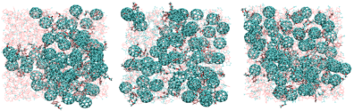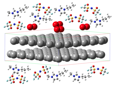 such as in the automotive industry. The limitation is due, in part, to the limited ionic conductivity of currently used organic electrolytes coupled with their volatility and flammability, which raises safety concerns. The development of new generation of Li ion batteries with significantly improved energy storage would require the selection of novel electrolyte materials with improved performance without compromising on safety standards. Room temperature ionic liquids (IL) possess unique properties, such as low vapor pressure and non-flammability, making them promising alternatives for use as Li battery electrolytes. However, IL’s often exhibit a great degree of ion association resulting in multiple anions coordinating with a single Li ion. Such enhanced coordination produces negatively charged clusters which can greatly reduce the mobility of Li and thus degrade the performance of IL electrolytes. Addition of organic diluents has been shown to enhance the transport properties of Li within IL’s. As part of this ongoing project, we are simulating IL-based electrolytes for Li batteries.