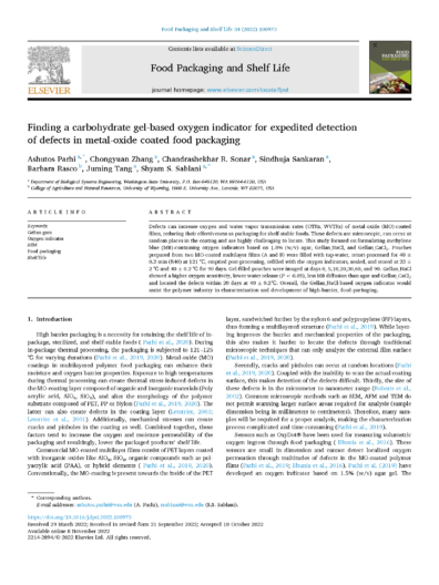- Parhi, A., Bhunia, K., Rasco, B., Tang, J., Sablani, S. S. 2019. Development of an oxygen sensitive model gel system to detect defects in metal oxide coated multilayer polymeric films. Journal of Food Science. 84(9): 2507-2519. [full text]