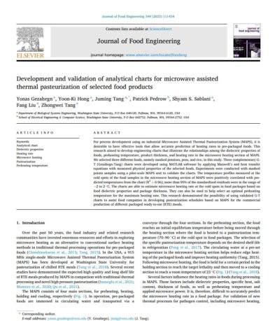 - Gezahegn, Y.A., Tang, J., Sablani, S.S., Pedrow, P.D., Hong, Y-K. 2021. Dielectric properties of water relevant to microwave assisted thermal pasteurization and sterilization of packaged foods. Innovative Food Science and Emerging Technologies. 74:102837. [full text]