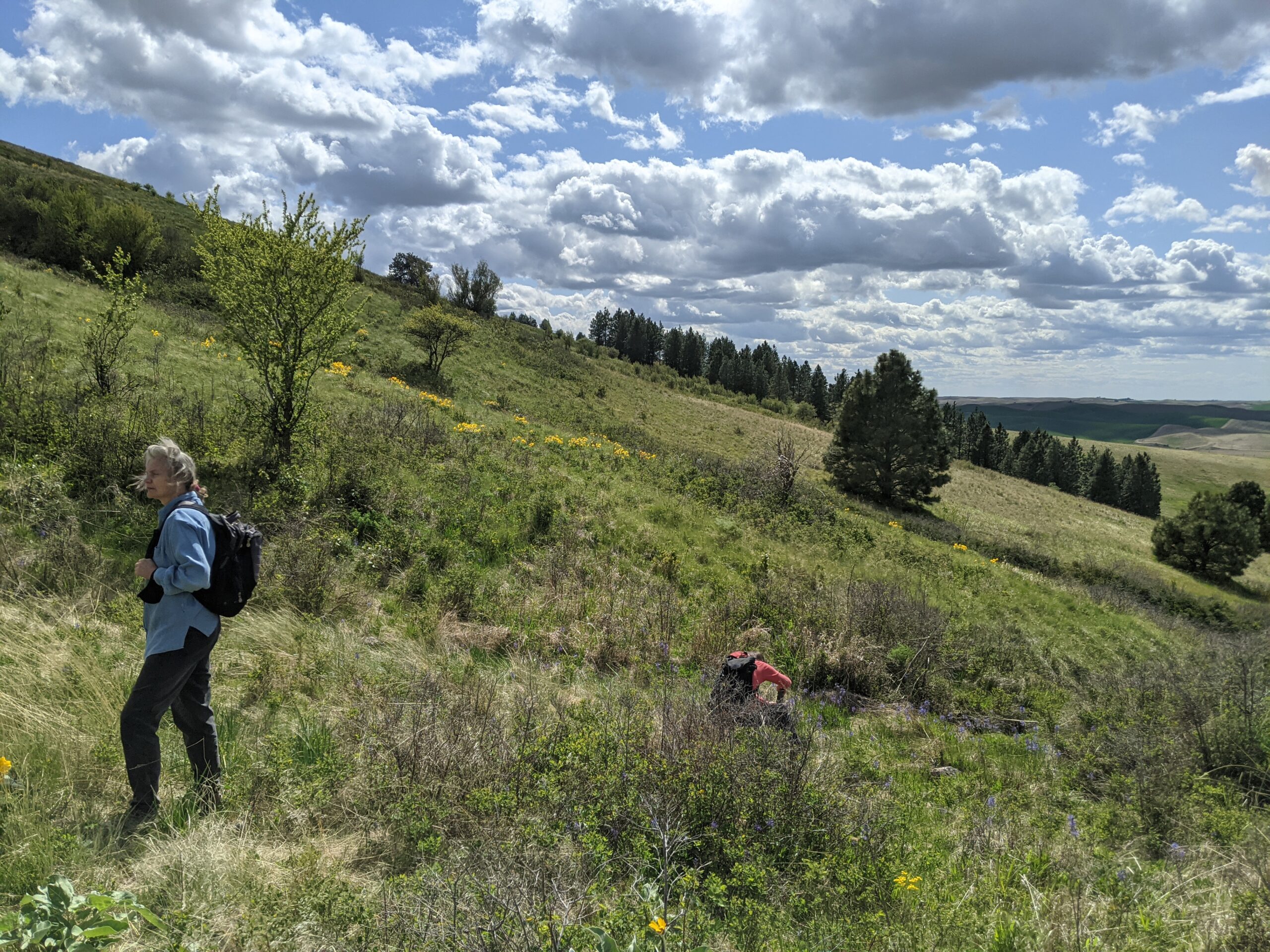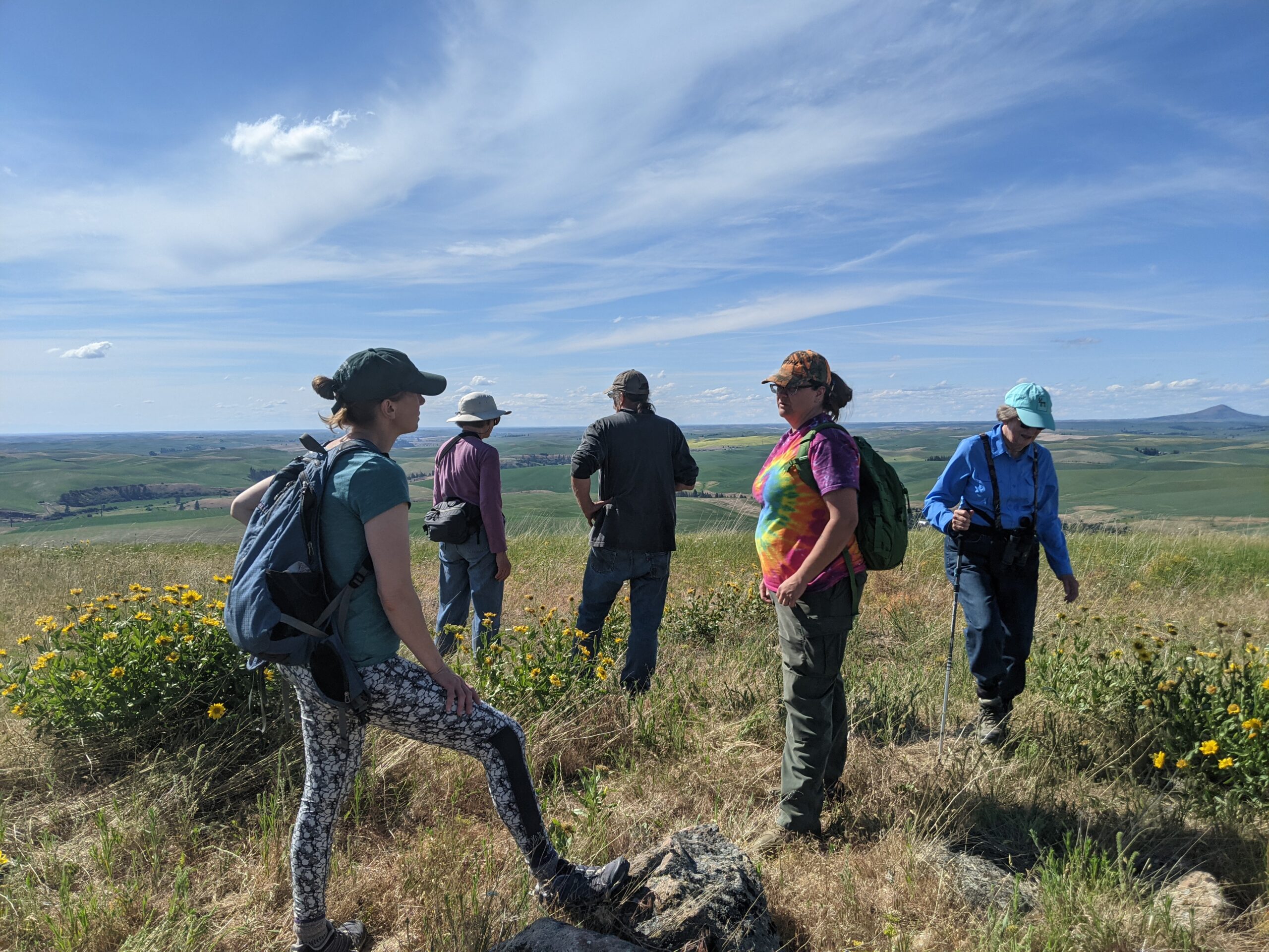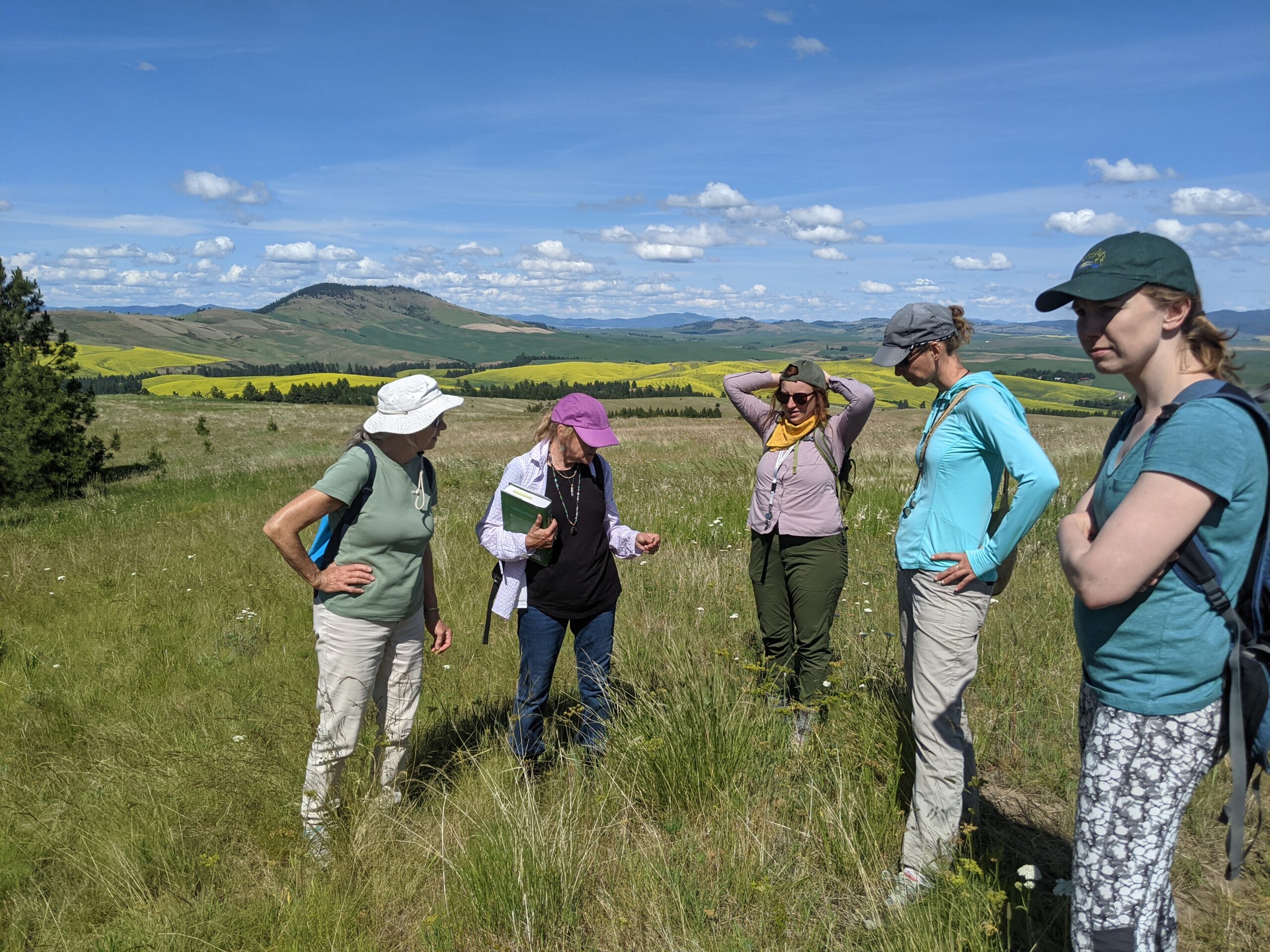 Biology graduate students Alexis Sullivan and Rachel Berner, and Caretaker Lewis Payne, had a lovely time on a native plant walk with the Palouse Matters group to explore our Palouse Prairie remnant on Smoot Hill. We look forward to future visits!