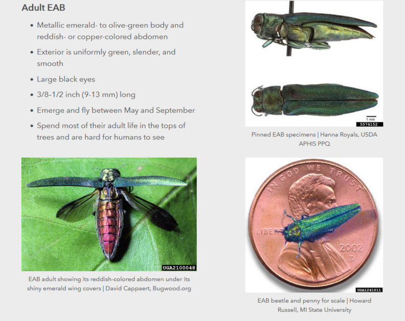 The Emerald ash borer is one of the most destructive invasive pests in central and eastern United States, it has killed ten millions ash trees in > 30 states and severely altered ecosystems that depending on these ash trees. While emerald ash borer is established in eastern North America, it was recently detected in Forest Grove, Oregon and in Vancouver, British Columbia, raising concerns that it may spread across the Pacific Northwest riparian ecosystems dominated by ash. Its Oregon establishment is of great concern, as it could devastate ash swales and sensitive riparian zones, the loss of these trees could further endanger wildlife that depend on forested wetlands. In response to its establishment, Oregon Department of Agriculture (ODA) has adopted a quarantine area to slow the spread of EAB by restricting the movement of host tree materials to unaffected locations in the state, the alive monitoring of EAB spread can be found here. The complete guide to EAB can be found here.