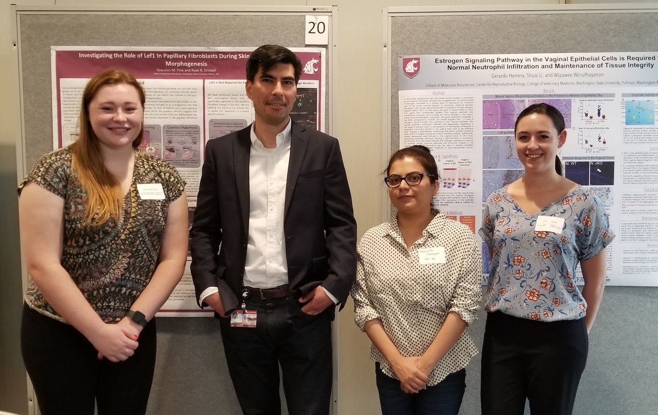 Dr. Mukherjee, Dr. Driskell, and Grace at the Driskell Lab at Washington State University.