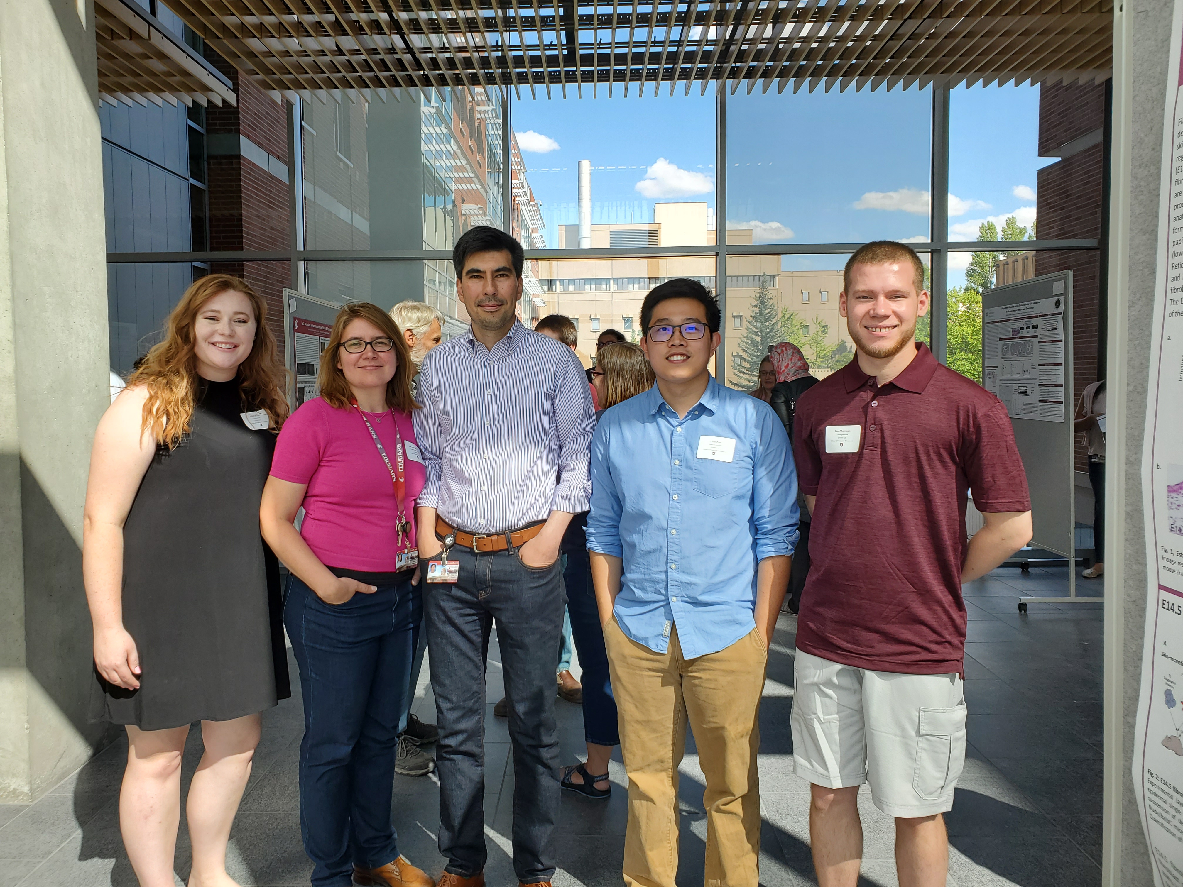 2. (L-R) Grace, Dr. Iwona Driskell, Dr. Ryan Driskell, Quan, and Sean at the poster presentation.
