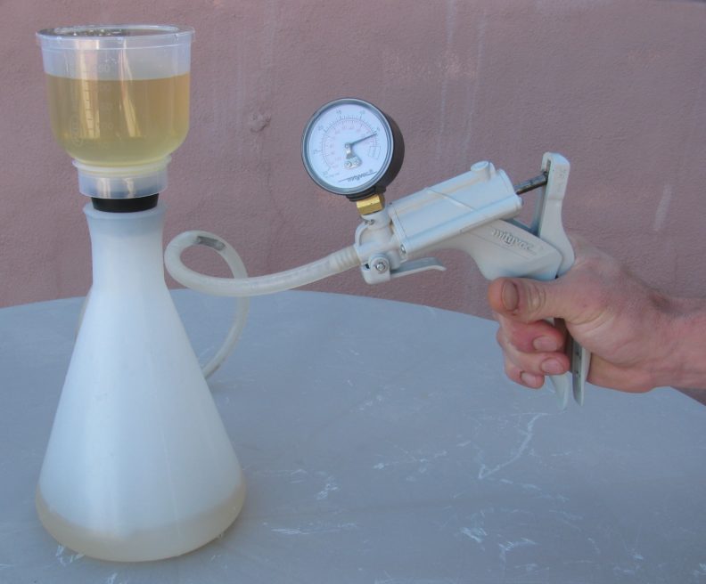Note: We have found that Sterlitech filter funnels (AF045W50) make a better seal than the Nalgene filter funnels used in these protocols and are able to filter more water before clogging. Filters can be swapped for PES 5.0 micron filters in systems where clogging is an issue (prior to 2021 this required Sterlitech 128006 which had to be custom for the filter funnels because they were 48 mm; as of our 2021 order, this is no longer the case). However, cup size is smaller (100 mL Sterlitech vs. 250 mL Nalgene). Sterlitech has a similar product in 300 mL but they have a different design. We recommend putting the filter cup stem directly on the stopper without the adapter for better performance.