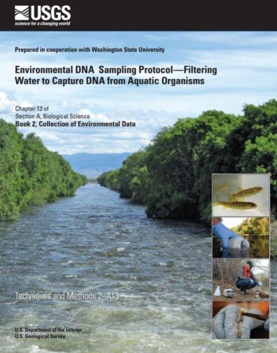 Laramie, M.B., Pilliod, D.S., Goldberg, C.S., and Strickler, K.M., 2015, Environmental DNA sampling protocol— Filtering water to capture DNA from aquatic organisms: U.S. Geological Survey Techniques and Methods, book 2, chap. A13, 15 p., http://dx.doi.org/10.3133/tm2A13.