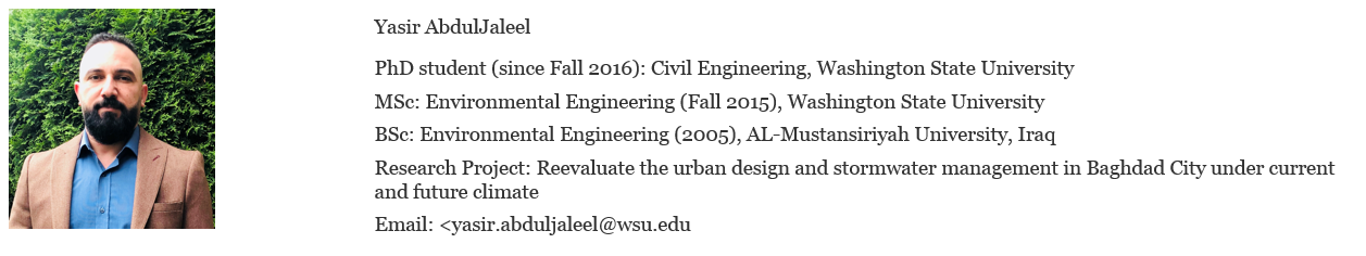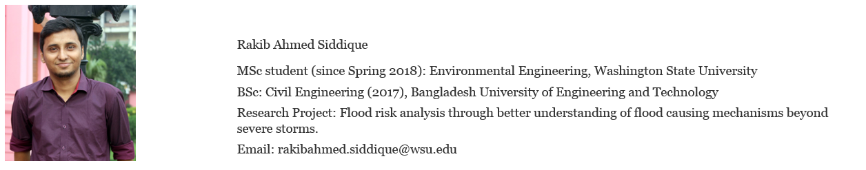 - Md. Rubayet Mortuza (MSc in Civil and Environmental Engineering, Graduated in May 2014, Currently a PhD student at Washington State University)