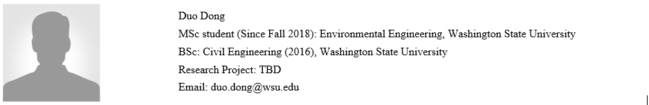 - Denis Mehinagic (MSc in Environmental Engineering, Graduated in Dec 2016, Currently at Washington State Department of Health)