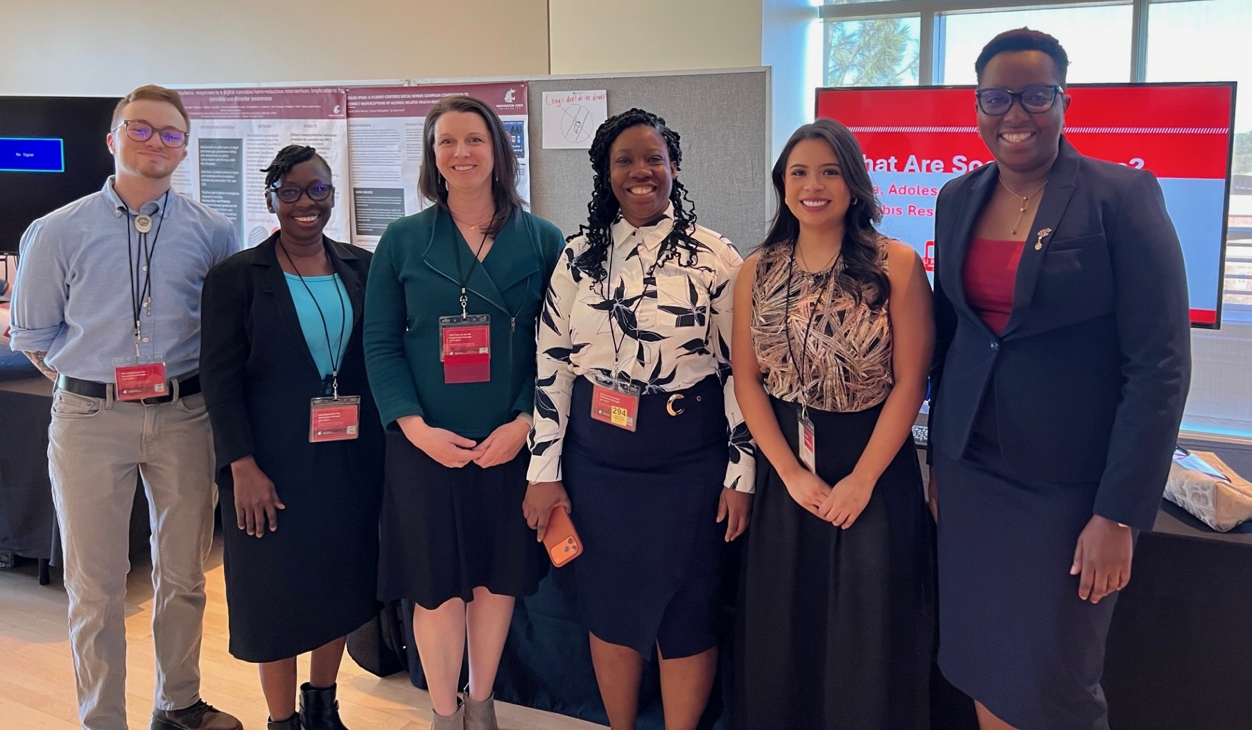 Above: MAC Lab members (from left to right) CJ Janssen, Folake Okor, MAC Lab Co-Director Jessica Willoughby, Ph.D., Opeyemi Johnson, Sandy Munoz, and Joy Wanja Muraya