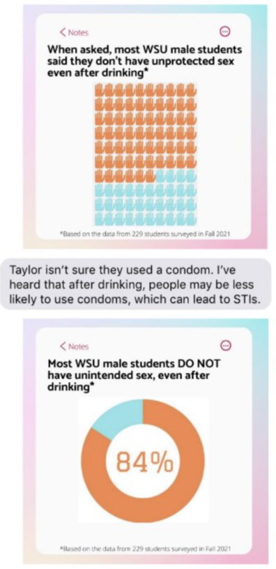 For the last few years, we have been working on furthering the social norms approach for substance misuse prevention. While past social norms work has often targeted campaigns based on gender, we explored opportunities to create campaigns that are effective without such targeting. Results are promising and have led to continued efforts to bolder social norms data and inform future intervention efforts. We are currently collecting both qualitative and quantitative data to further campaign efforts.