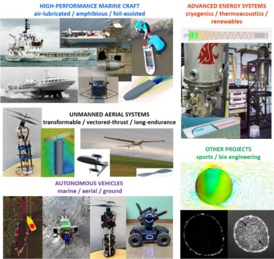 Our main research areas include High-Performance Marine Vehicles, Hydrogen Systems, and Unmanned Mobile Platforms. Our work in Marine Vehicles is focused on hydrodynamics, dynamics, propulsion, and design of advanced marine craft, including air-lubricated hulls, hydrofoils, amphibious platforms, and other concepts. In the area of Hydrogen Systems, we investigate hydrogen-related fundamental phenomena and develop practical systems for producing, storing, transporting and utilizing hydrogen. Our efforts in Unmanned Systems include modeling and experiments of unconventional aircraft, rovers, tanks, boats, and underwater vehicles.
