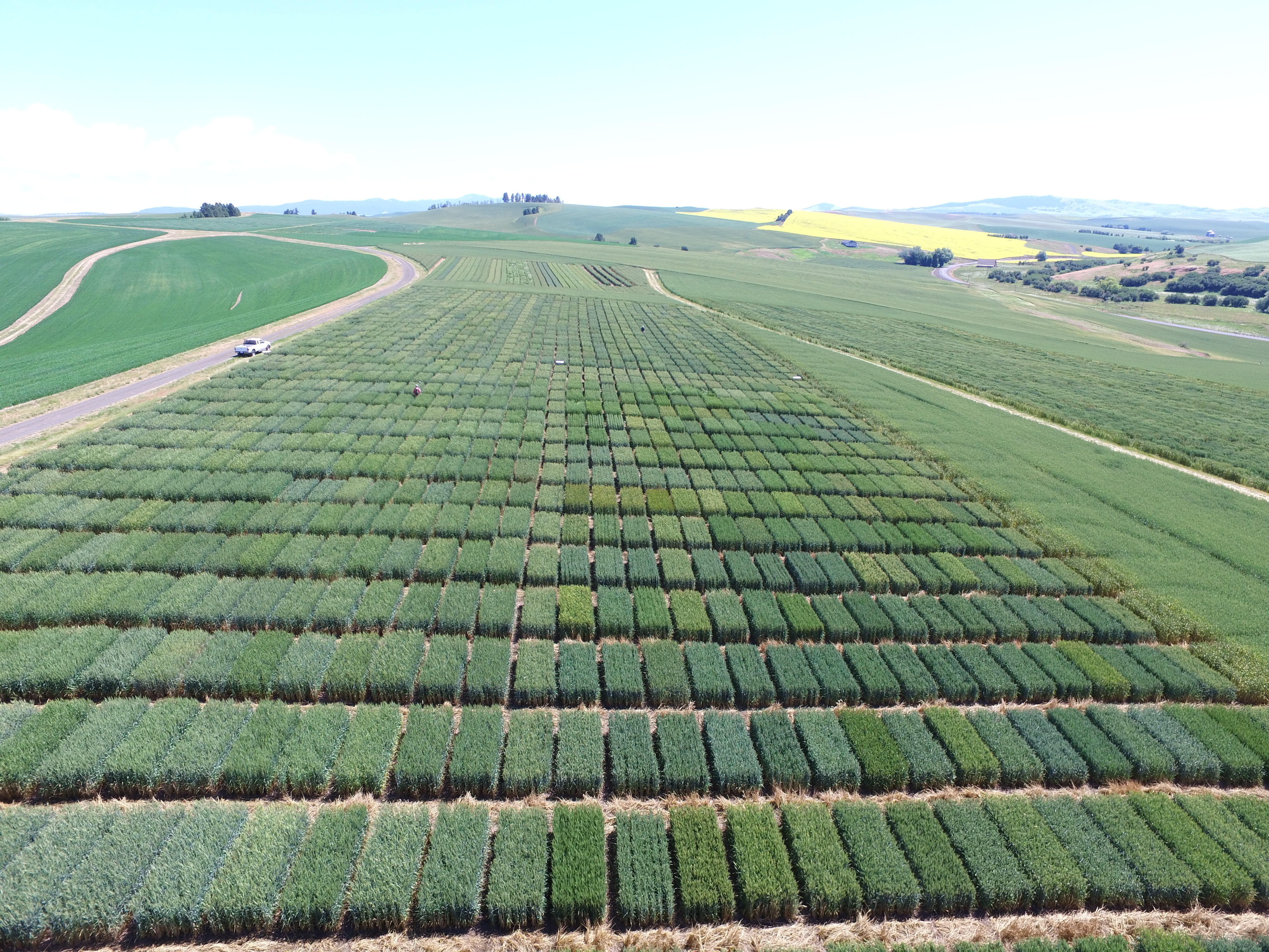 In WSU’s winter and spring wheat breeding program, phenomics data are used as proxy measurements for many agronomic traits, and used to make selections and advance lines released as new cultivars. Multiple systems such as handheld, tractor-mounted, and UAV-mounted sensors are used. Research is mainly conducted under field conditions, but sensor platforms (Phenospex PlantEye, Drought Spotter, LemnaTec Scanalyzer) in greenhouses are available to select superior wheat lines that advance to field testing. Students can be involved in data collection and developing prediction models for performance (agronomic, yield) evaluation.