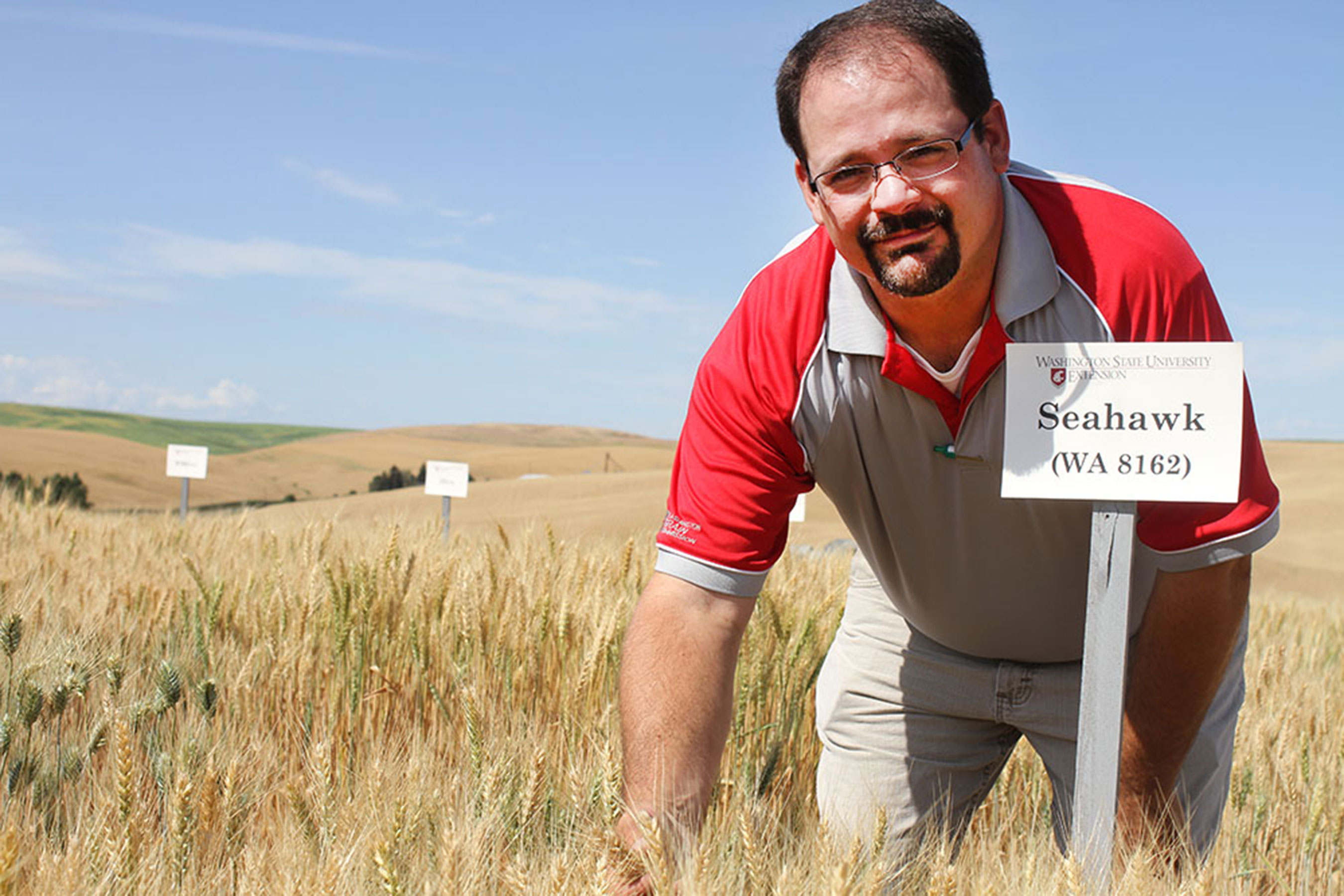 Pumphrey leads the spring wheat breeding program. The WSU wheat breeding programs collaborate on multiple market classes, including soft white, hard red, club, and hard white wheat. The spring wheat program has released new cultivars that are grown on over 50% spring wheat acreage in Pacific Northwest. Cultivars released have increased the annual value of Washington’s wheat crop by at least $20 million. These programs are supported by both federal and state funds, and the Washington Grain Commission. In addition, WSU germplasm are frequently used as parents in private breeding programs and contribute to adaptation, disease resistance, and yield potential. His program also integrates technological advancements for selecting new wheat cultivars.