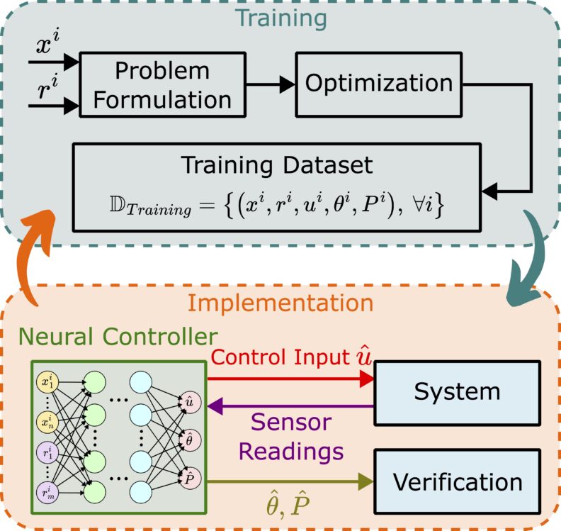 Goal: The primary objective is to develop neural controllers that replicate the behavior of optimal controllers for nonlinear systems, while ensuring rigorous guarantees for safety, stability, and high performance.