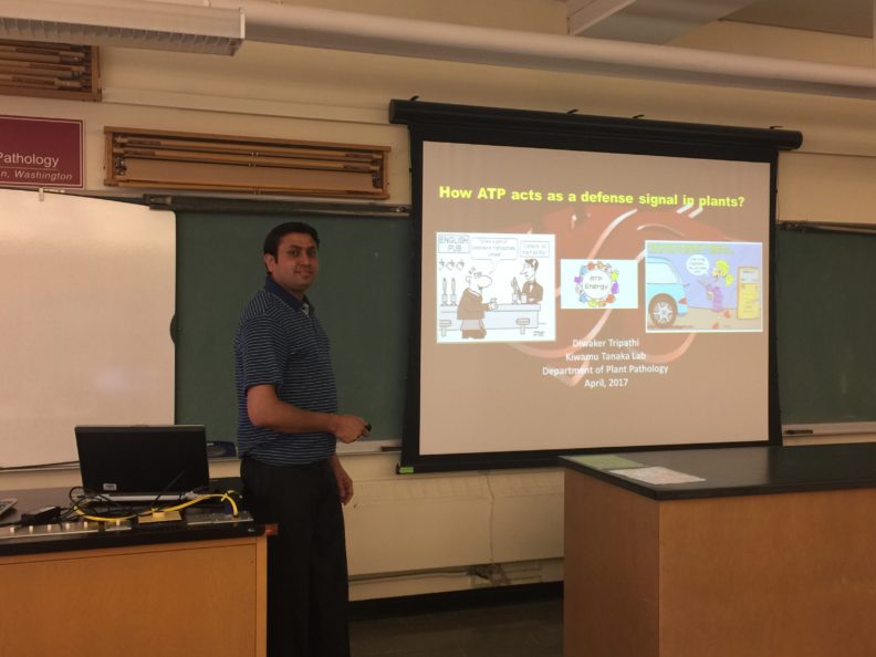 April 24, 2017 – Diwaker Tripathi gave a talk about his extracellular ATP research in the seminar series for Department of Plant Pathology at WSU in Pullman, WA.