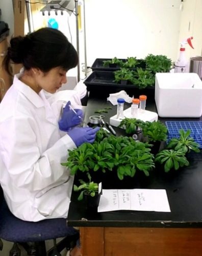August 11, 2017 – Misumi Sano completed the CAHNRS Undergraduate Internship program. During the internship, Misumi learned a broad range of experiments in plant pathology and molecular genetics using Arabidopsis, e.g., generating double mutants and pathogen infection assay in the mutants. Fortunately, she have enjoyed her internship and decided to continue her independent research on the extracellular ATP project in our lab. Special thanks to her mentor, Jeremy Jewell.