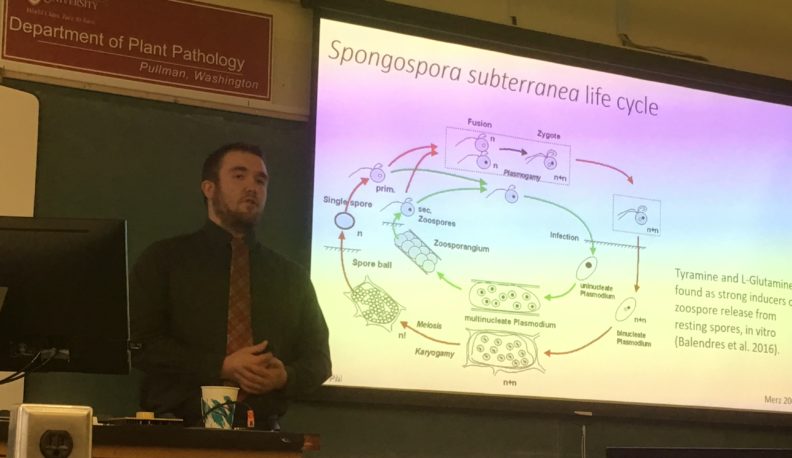 April 2, 2018 – Joey DeShields gave a exit seminar at the Plant Pathology Seminar Series in Pullman, WA. His talk went well, and he is now one step closer towards his Master’s degree.