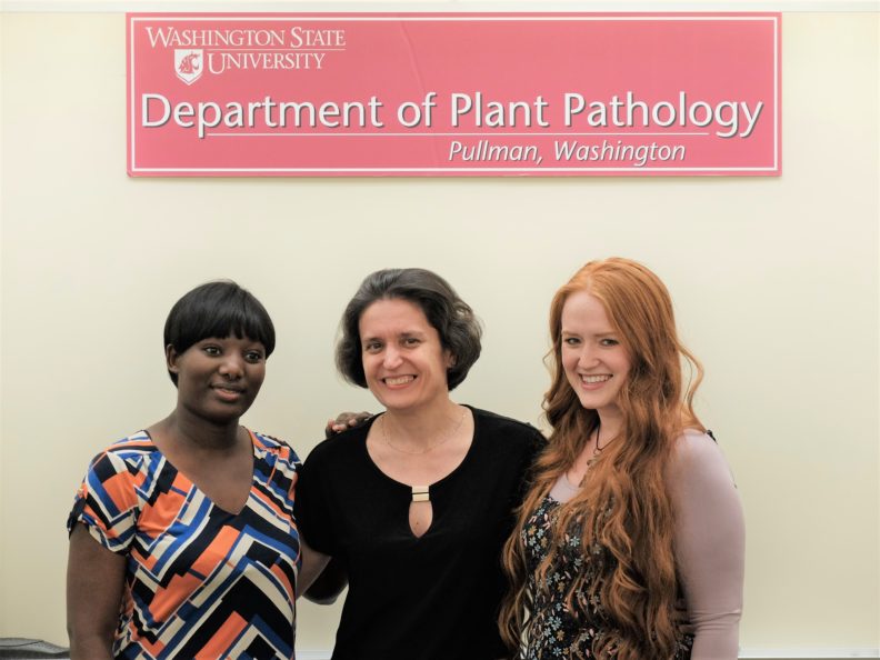 August 3, 2018 – Tumelo Moyo (from National University of Science and Technology, Zimbabwe) completed her internship with a international undergraduate intern program. This international internship program was a part of curriculum in National University of Science and Technology, Zimbabwe. Tumelo spent 15 month in our lab to learn experimental techniques and research skills in molecular plant pathology. Her research focus was to develop a transient infection system using potato hairy roots to study powdery scab disease. Special thanks to Natalia Moroz and Karen Fritch for mentoring and assisting the Tumelo’s research.