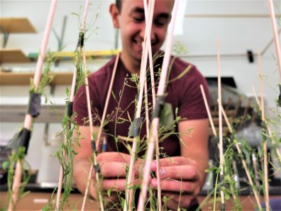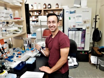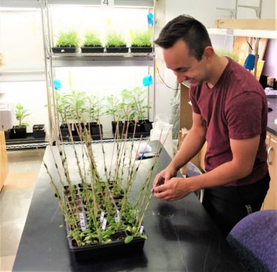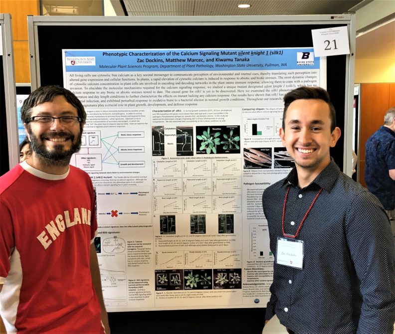 August 3, 2018 – Zack Dokins (from Boise State University) successfully completed his internship with the WSU Native American REU Program. He presented a poster as a summary of his internship research at the WSU Summer Research SymposiumThis internship was a part of the Research Opportunities for Native American Undergraduate Students organized by Drs. Amit Dhingra and Lori Carris. Zack spent two months in our lab to learn experimental techniques and research skills in molecular biology and biochemistry using plants. During his internship, he communicated well with our lab members to advance his scientific knowledge and experience. Zack made a great contribution to our research program. Special thanks to his mentor, Matt Marcec.