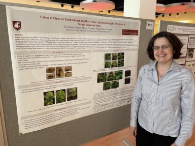 March 24, 2022 – Hira Kamal and Natalia Moroz gave a poster presentation entitled “Using virus to understand a virus: investigating virulence of potato mop top virus” at the Academic Showcase at WSU-Pullman.