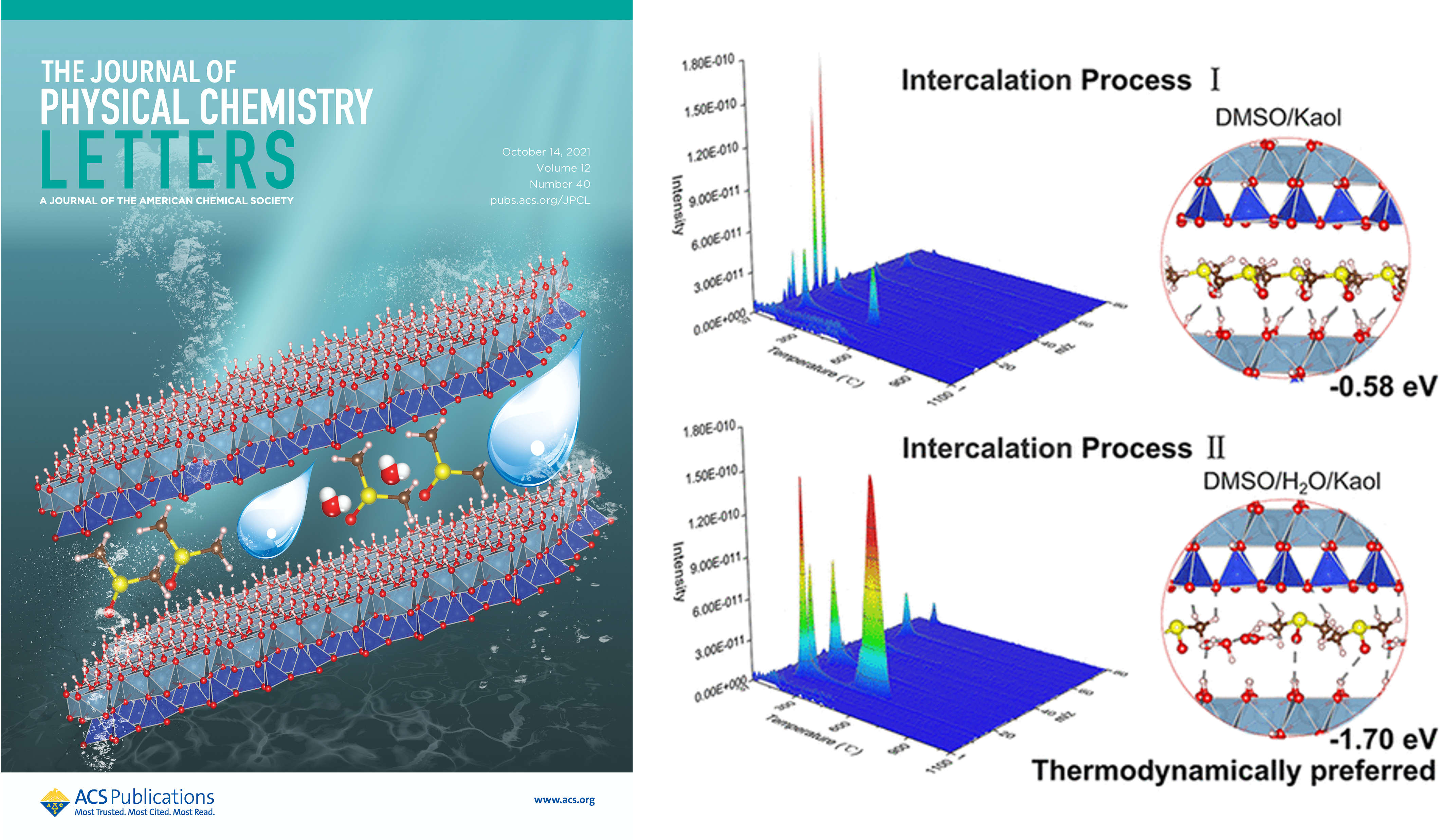 Our new collaborative paper on confinement energetics of water & DMSO in kaolinite, “Energetics, Interlayer Molecular Structures, and Hydration Mechanisms of Dimethyl Sulfoxide (DMSO)–Kaolinite Nanoclay Guest–Host Interactions“, is featured as the one of the covers in The Journal of Physical Chemistry Letters on October 7, 2021.