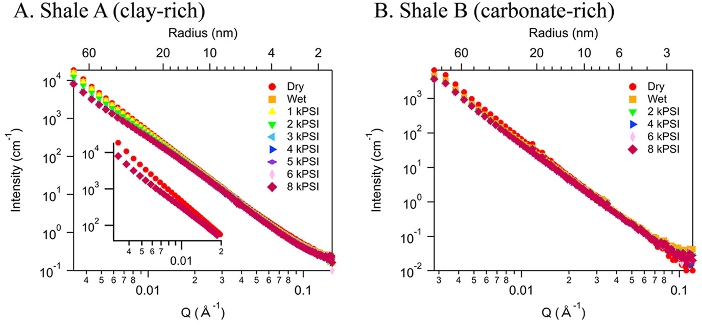 One collaborative study we involved in, led by Dr. Chelsea W. Neil at Los Alamos National Laboratory, has been published in Energy & Fuels “Small-angle Neutron Scattering (SANS) Characterization of Clay- and Carbonate-rich Shale at Elevated Pressures”.